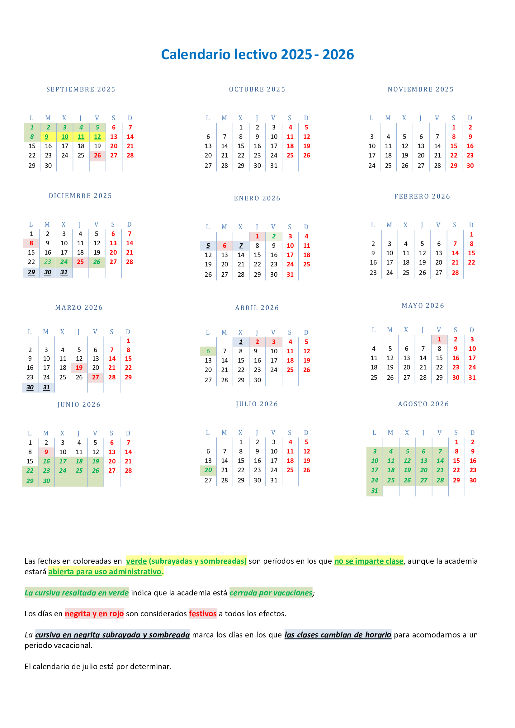 Para conocer qué días serán lectivos, cuáles serán nuestros festivos o cómo nos adaptaremos a las vacaciones escolares, os dejamos el enlace para que os podáis descargar nuestro calendario lectivo.